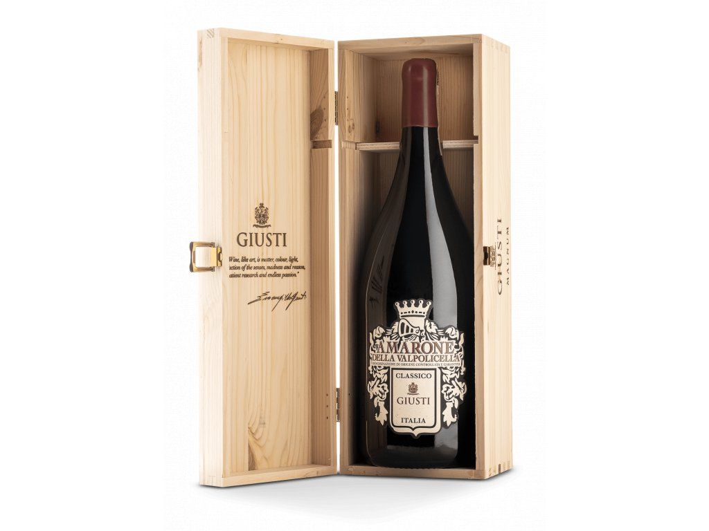 Luxusné a bohaté víno vo veľkej magnum fľaši pochádza z oblasti Veneto v Taliansku. Víno s plnou teplou chuťou je výsledok darov krajiny s technickými znalosťami človeka. Zabalené v drevenej darčekovej krabici.