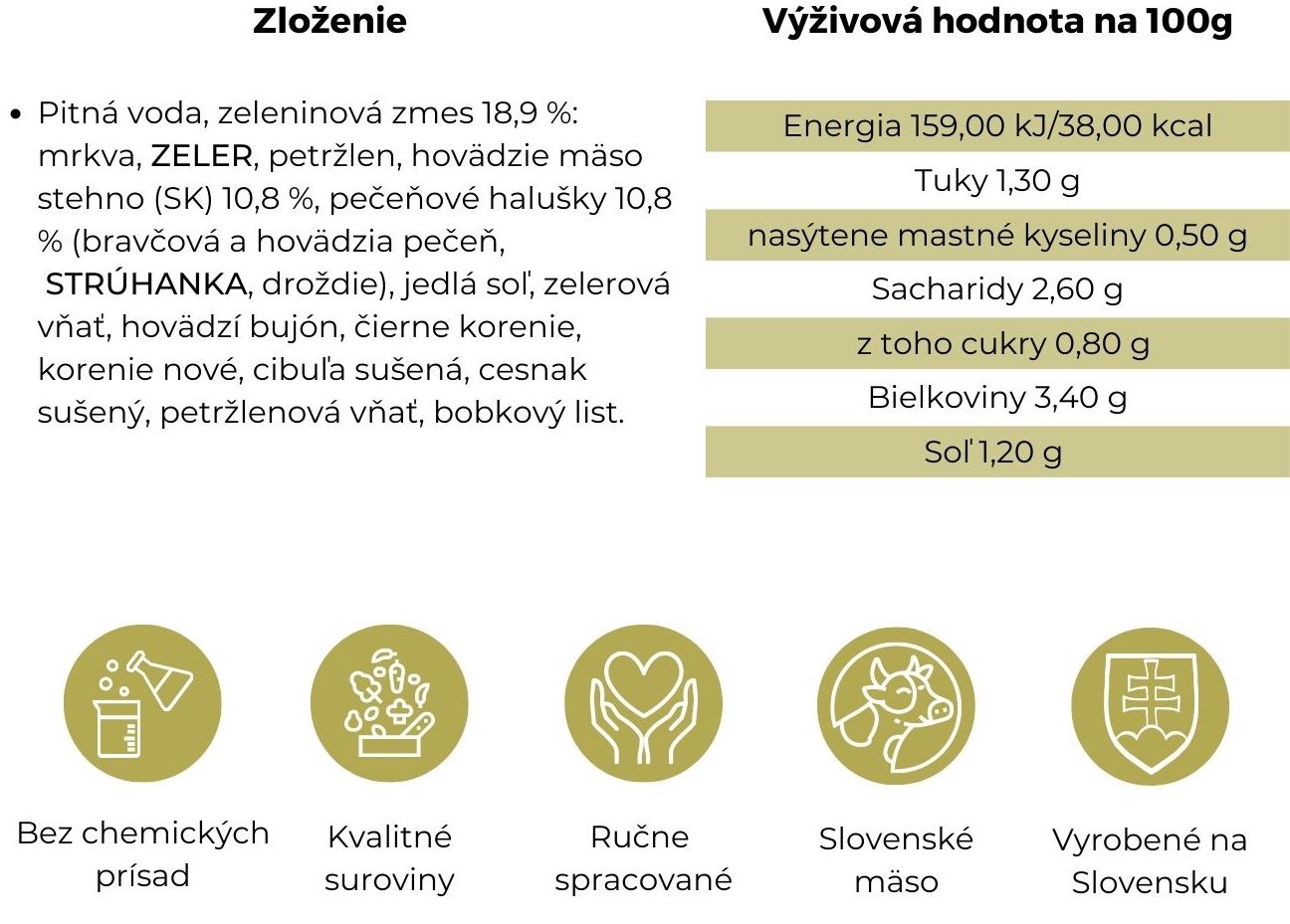 Vyskúšané na stanovačke a bola výborná. Nie je to len šťava, je tam veľa zeleniny, hovädzie mäso a knedličiek je tiež dosť. Z tejto veľkej plechovky sme mali 6 porcií. Ďakujeme za ušetrenie času. Magdaléna