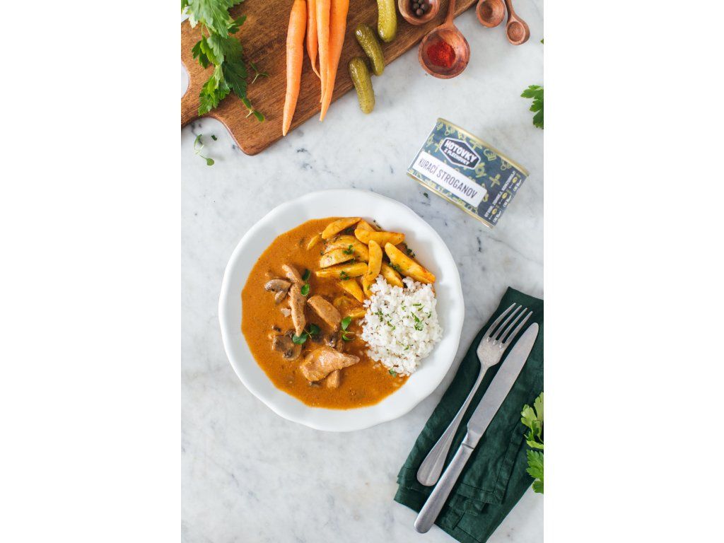 Kurací stroganov je prekvapenie. Zaradil sa do top3 Vašich hotoviek. Vynikajúco vyvážená sladkasto-kyselkavá chuť s dostatkom mäsa. Chute v jedle sa prekvapujúco perfektne doplňaju a nebijú sa.